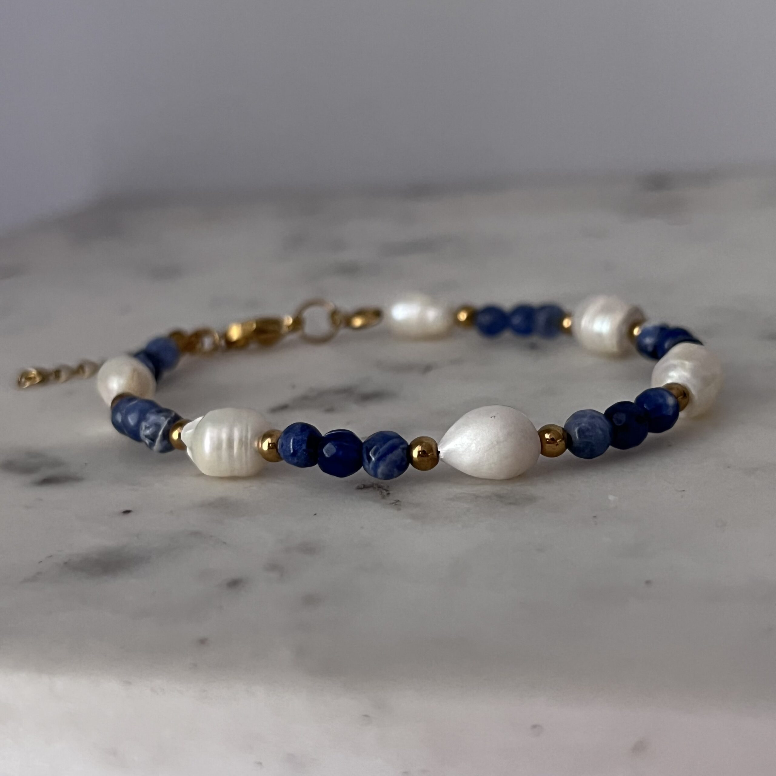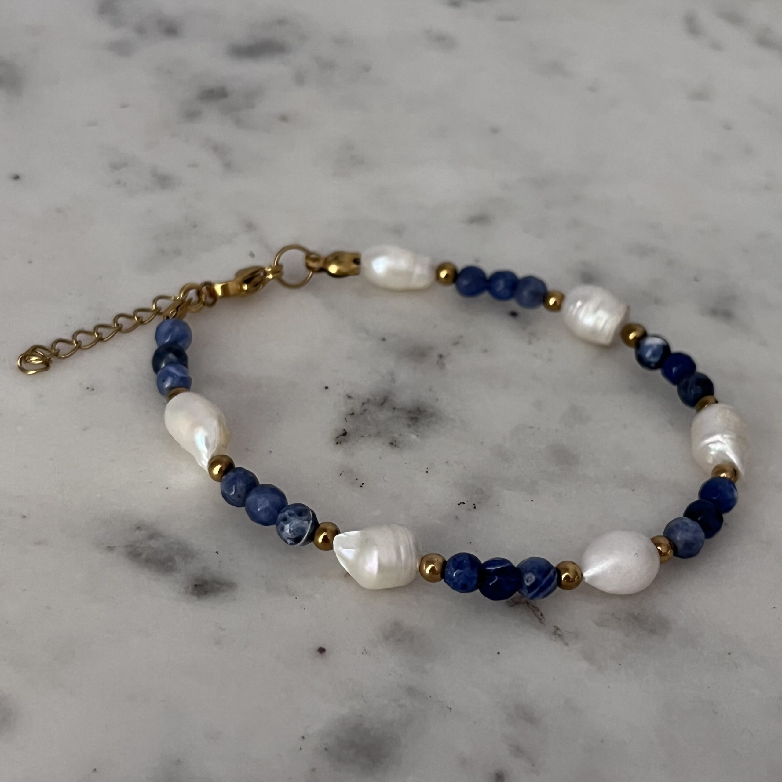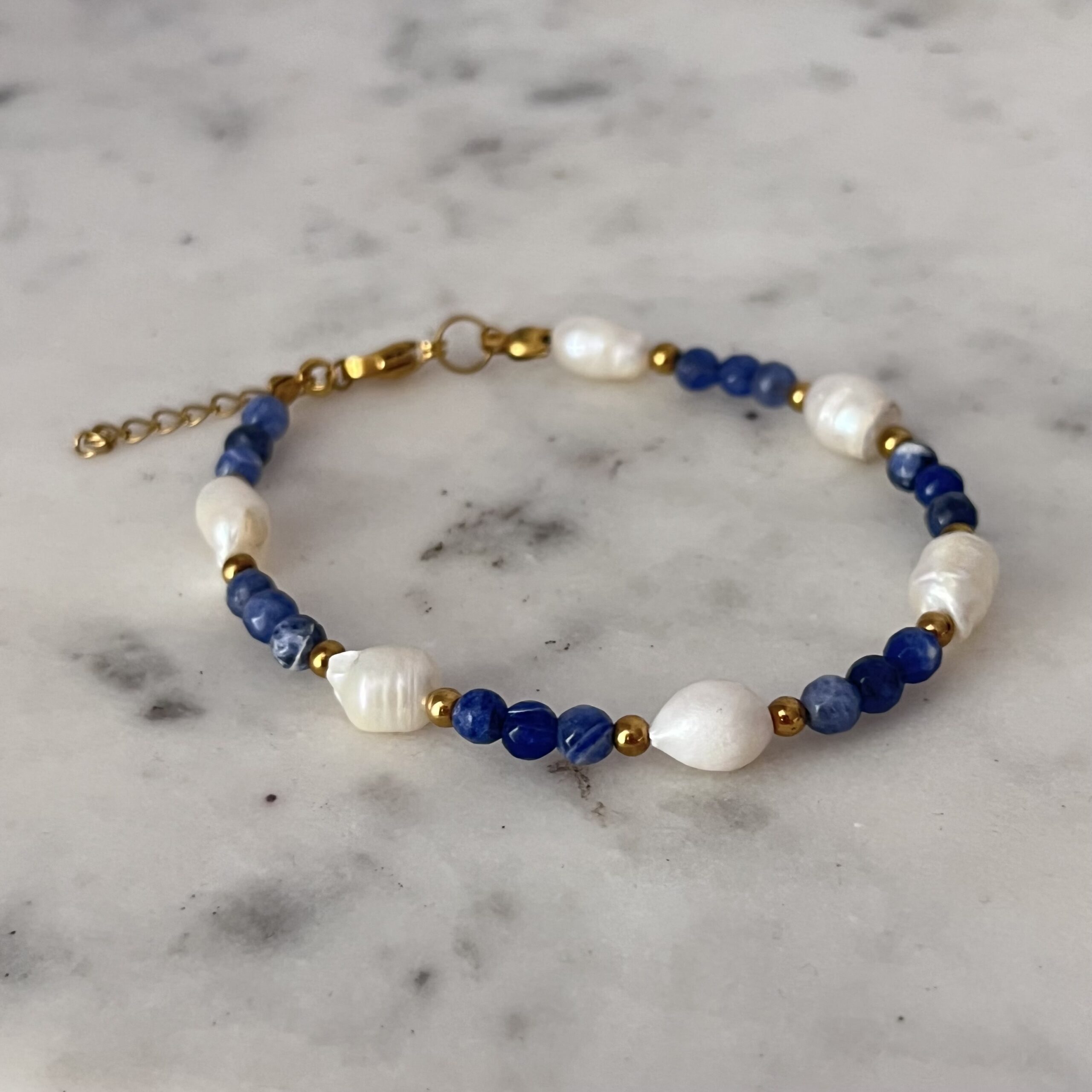 Bransoletka damska wykonana z pereł i jadeitu, złote przekładki