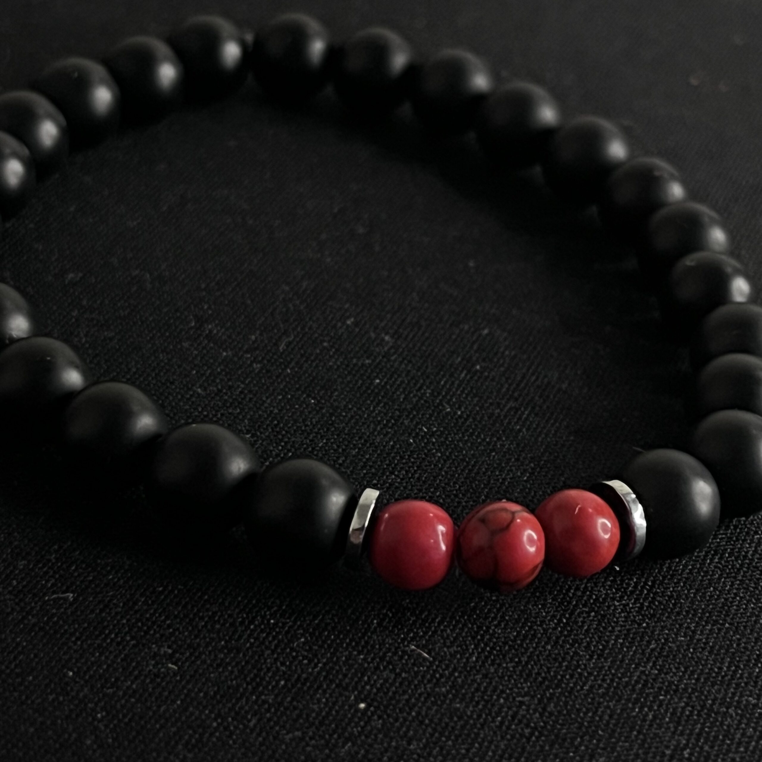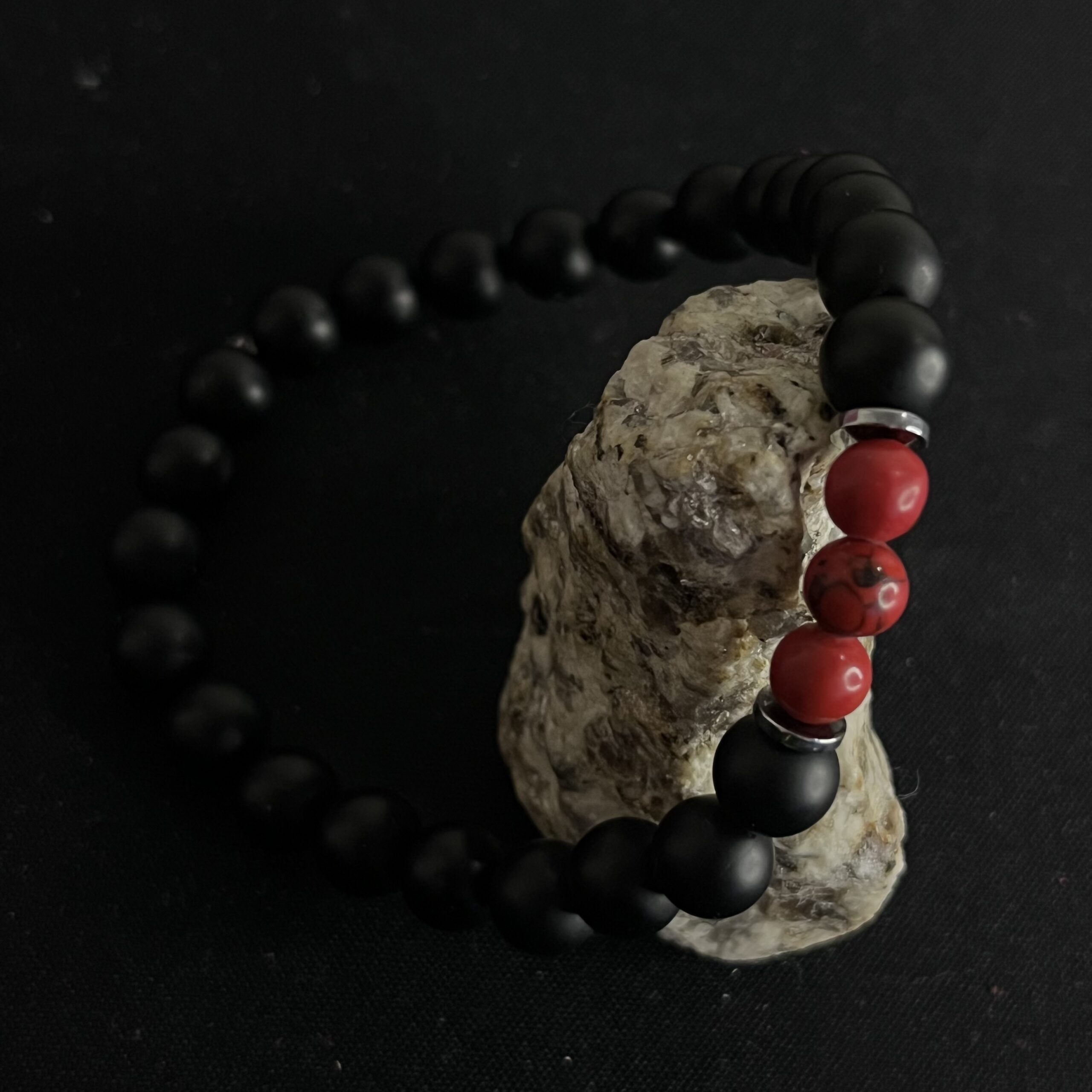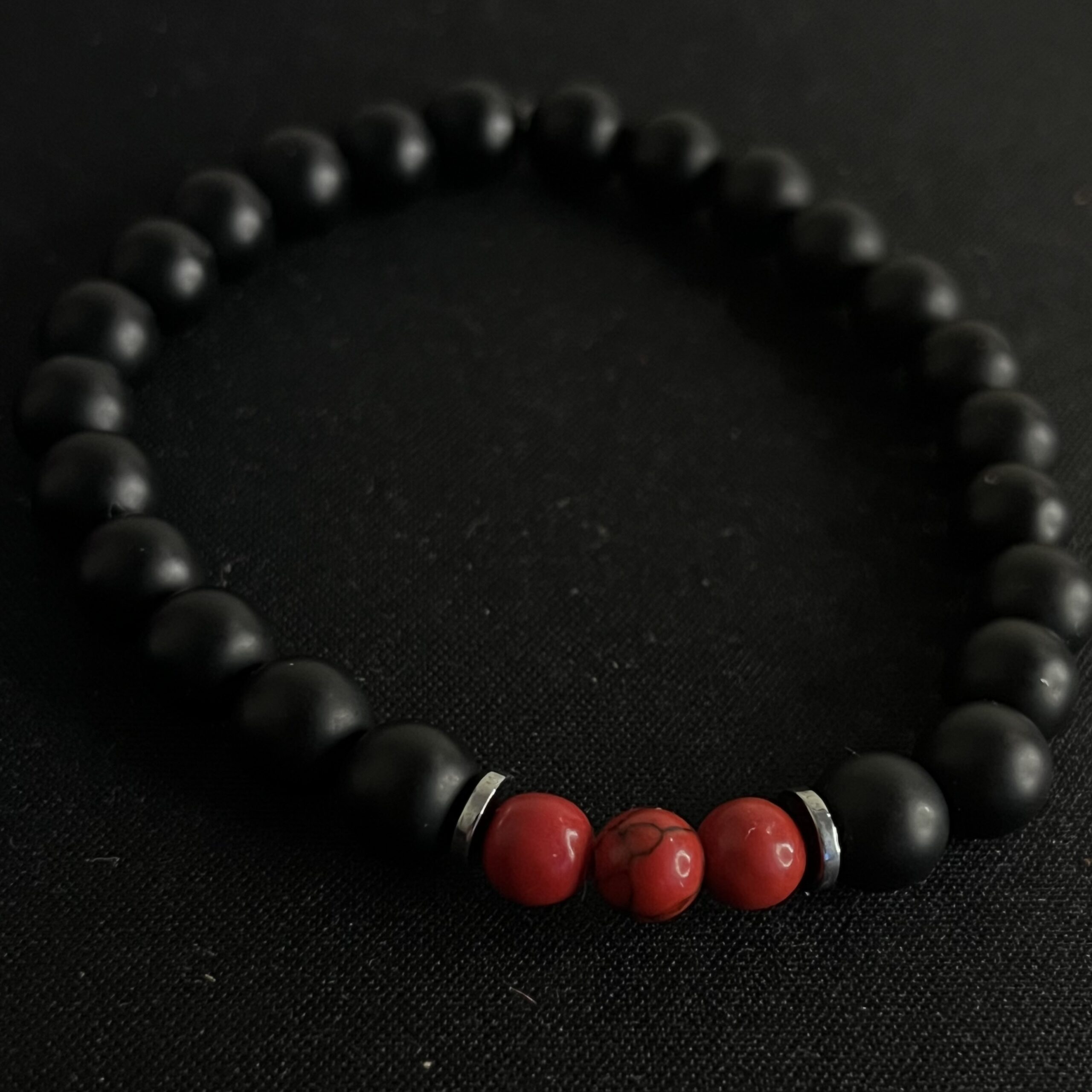 Bransoletka męska elastyczna z kamieni matowych onyksu w rozmiarze 8 mm Obwód ok. 20 cm