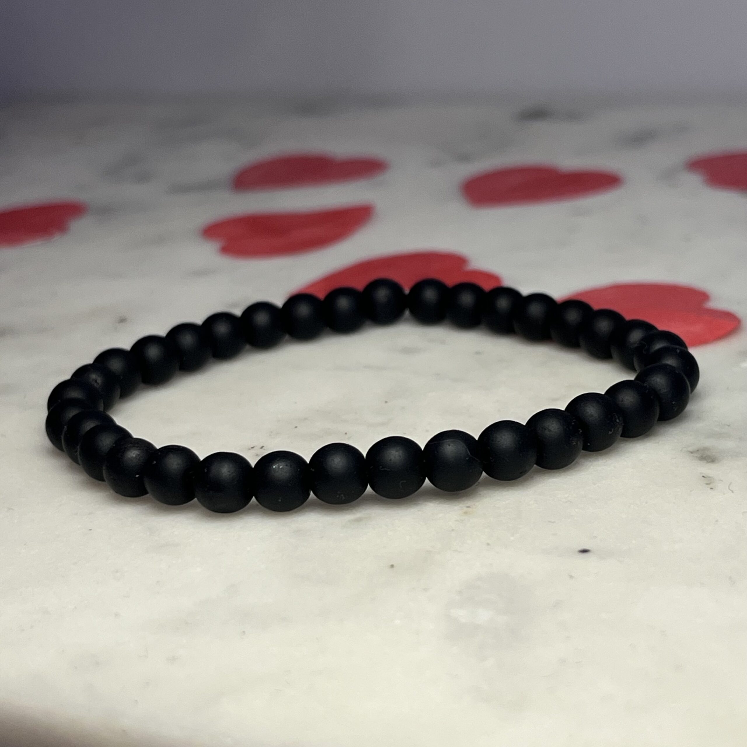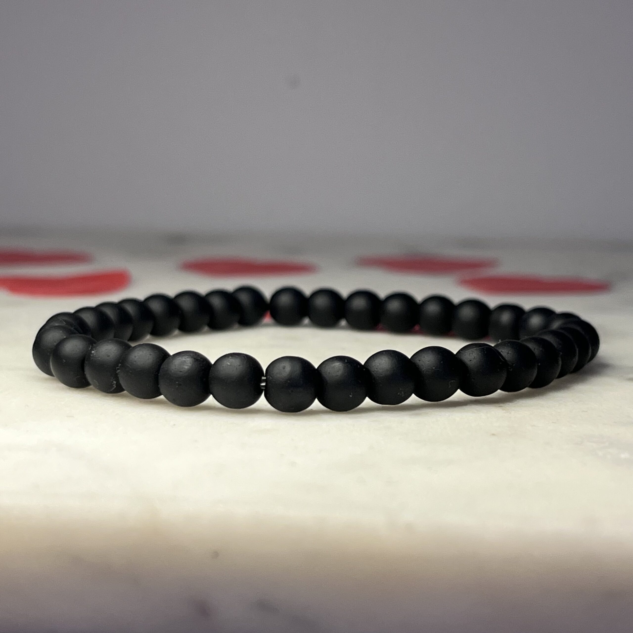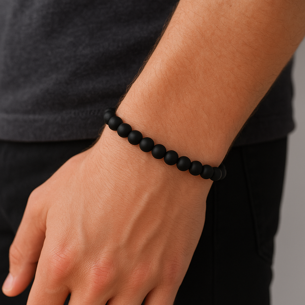 Bransoletka meska elastyczna wykonana recznie z matowego onyksu