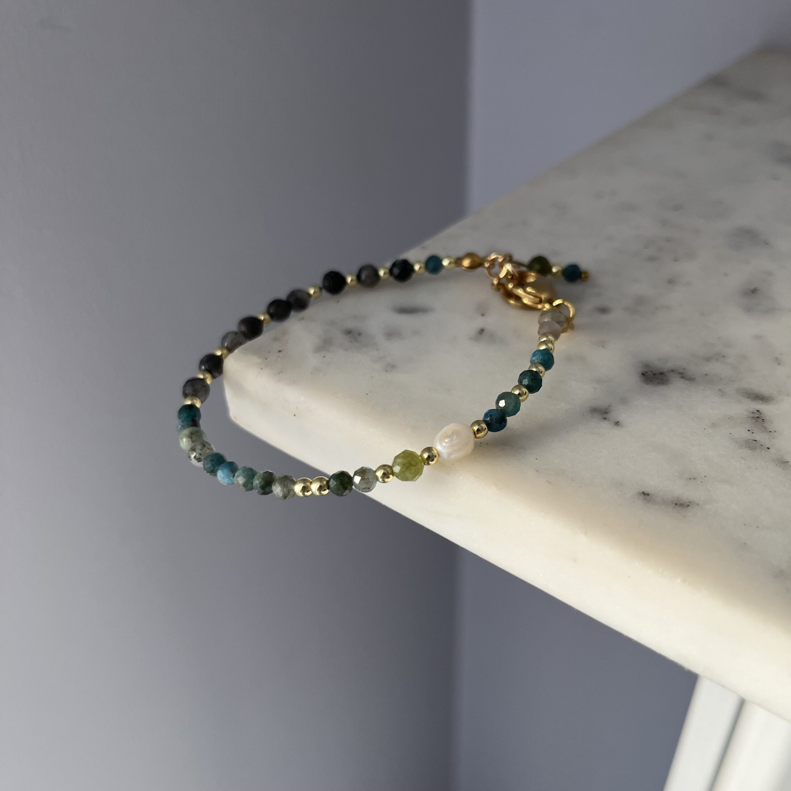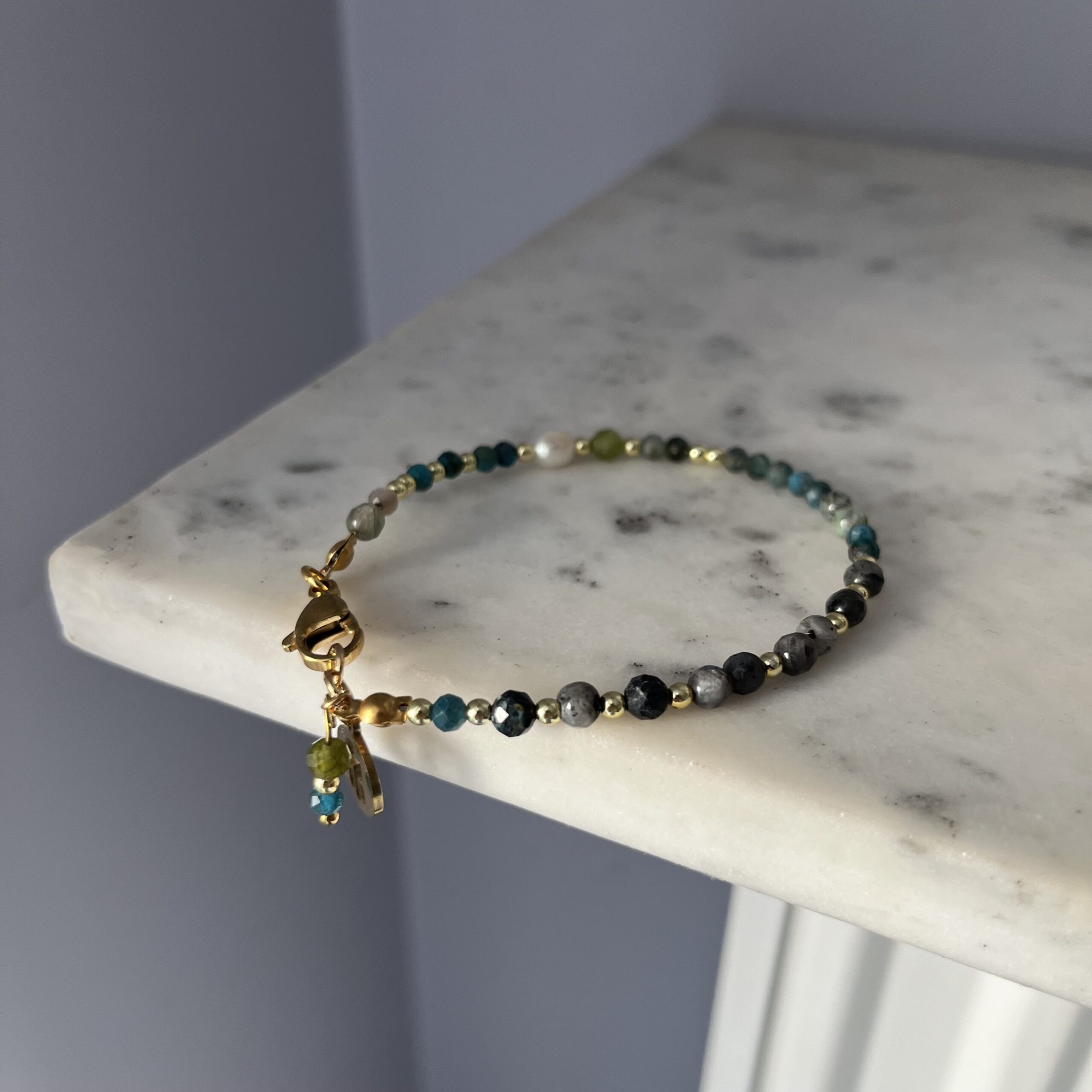 ✨ Bransoletka z larvikitu, apatytu i chryzokoli ✨